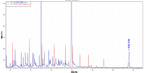 检样TIC图(粉色)与多溴联苯醚混标TIC图(黄色)