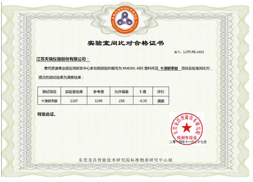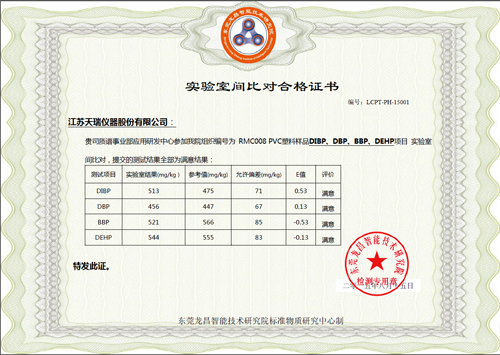 附表1:试 室间对比及格计算机证书(塑化剂)