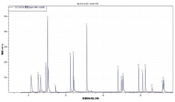16种PAHs实验室管理标准品SIM扫描仪阴阳离子流色谱图