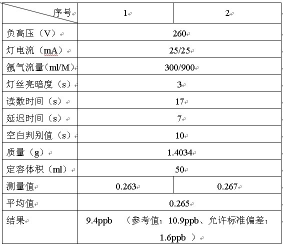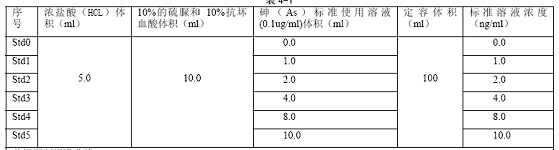 从样本中称样0.20g左右于玻璃钢烧杯里,插足8ml HCl,5mlHF, 8ml HNO3。调温消解。保压后定容于100ml电容量瓶中,插足5mlHCl,5%的硫尿和抗坏血酸悬浊液20ml。(同时做样本空岗)。