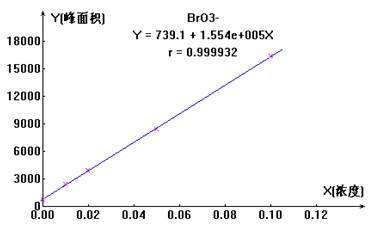 由尝试数据可知,离子色谱法测试水中BrO3-阴离子精确度高,检出浓度低,体例简略快速,完整知足环保行业对水中BrO3-离子检测的需要(yao)。